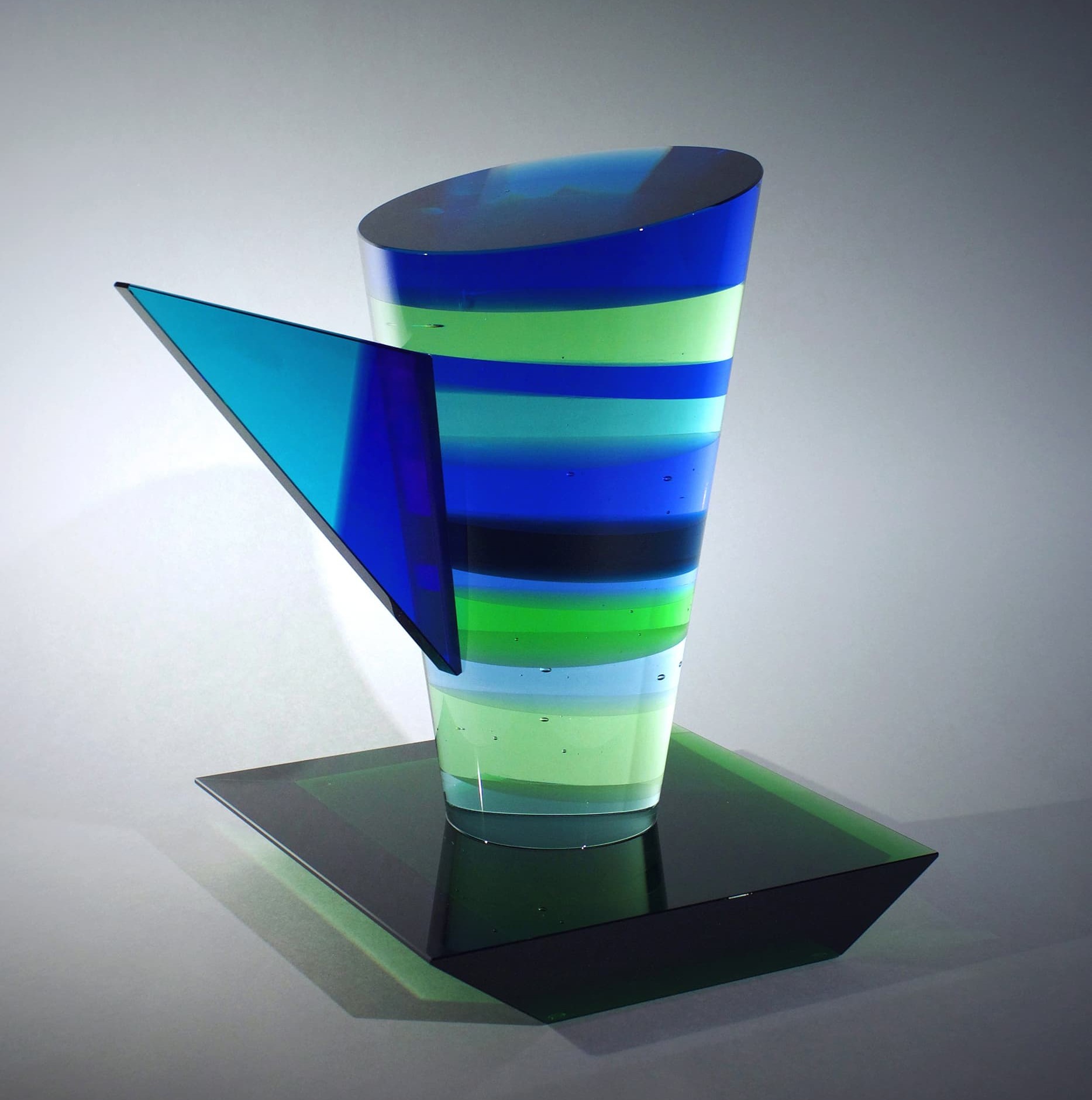 Petra Hřebačková tu nepracuje s efektem, ale s precizností. Jednotlivé části do sebe nezapadají mechanicky, nejsou to jen hezky poskládané skleněné segmenty. Celek působí, jako by měl vlastní vnitřní logiku. Jedna hmota se opírá o druhou, jedna plocha otevírá další, jedna linka vás vede dál. Dílo tak nečtete najednou. Musíte po něm pohledem projet. Obejdete ho a zastavíte se. Teprve pak začne fungovat naplno.