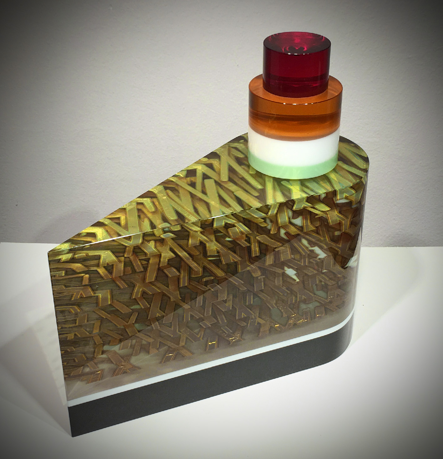 Popis: Dort, tabulové sklo prokládáno stříbrnými plátky v kombinaci s barevným sklem, tavená plastika Rozměry:  Autor: Tomáš Hlavička Datace: